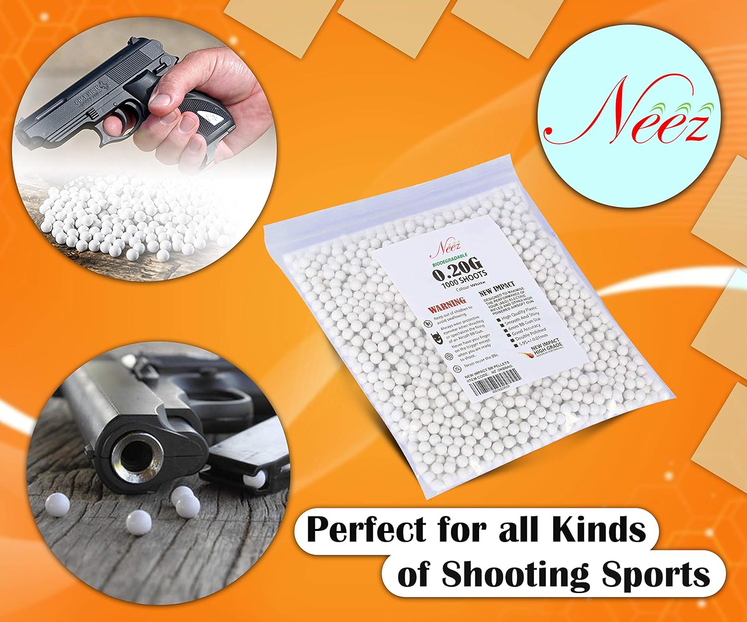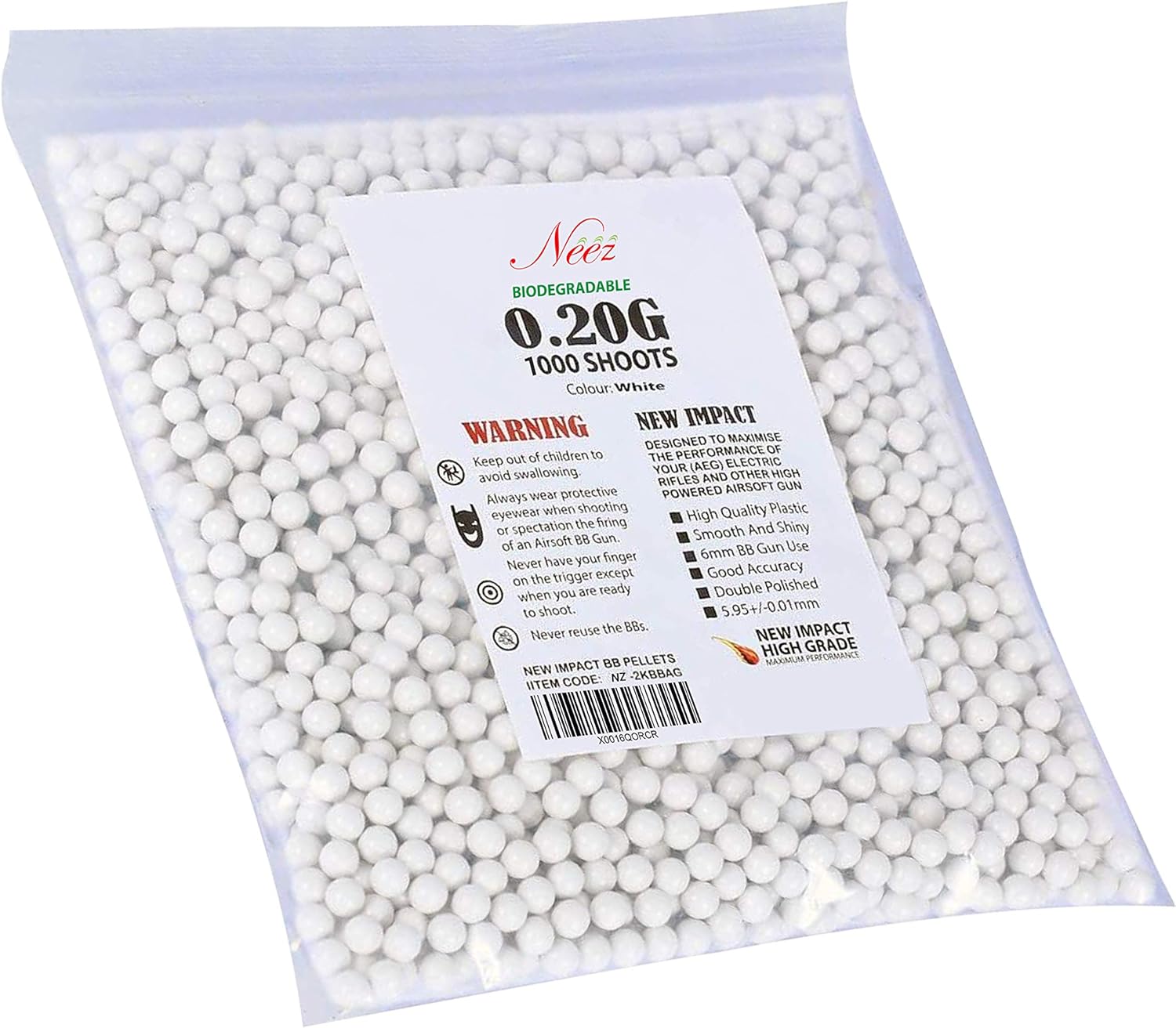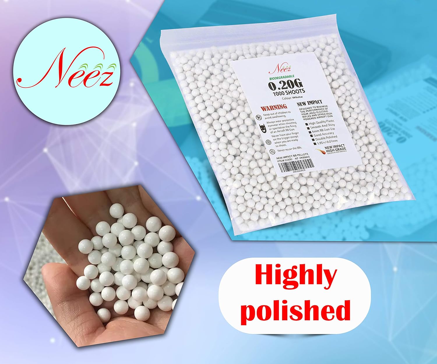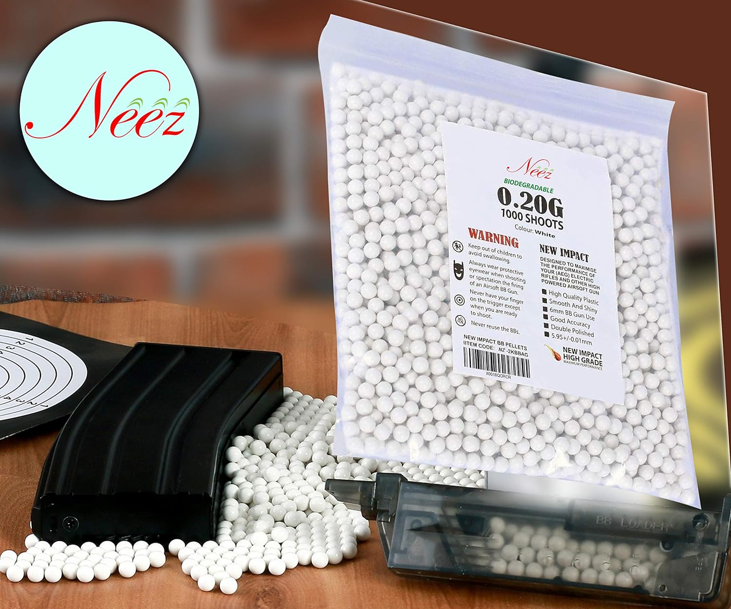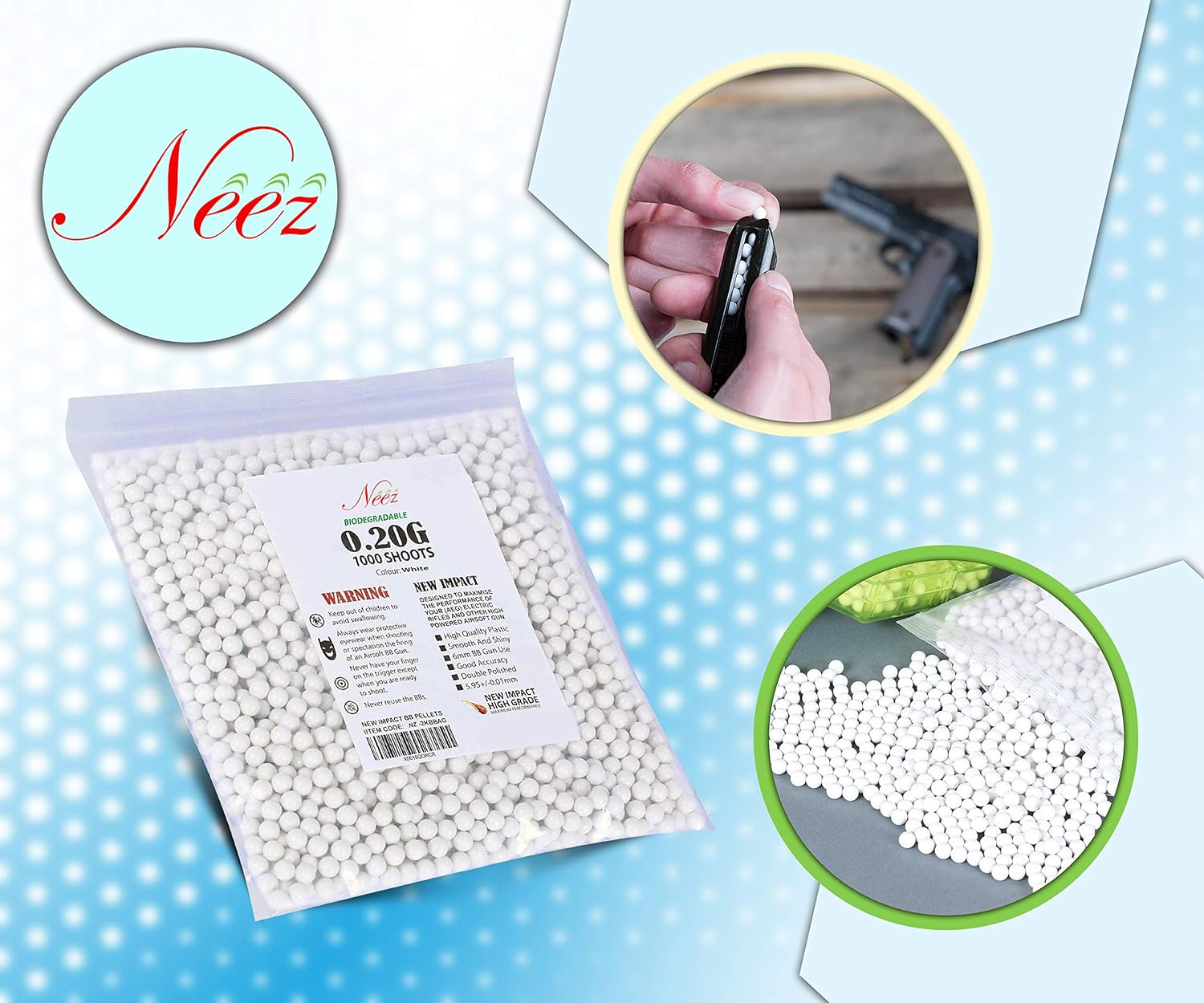 Material: Neez Airsoft BB Pellets are made of high-quality biodegradable plastic, making them an eco-friendly choice for airsoft enthusiasts who want to minimize their environmental impact.