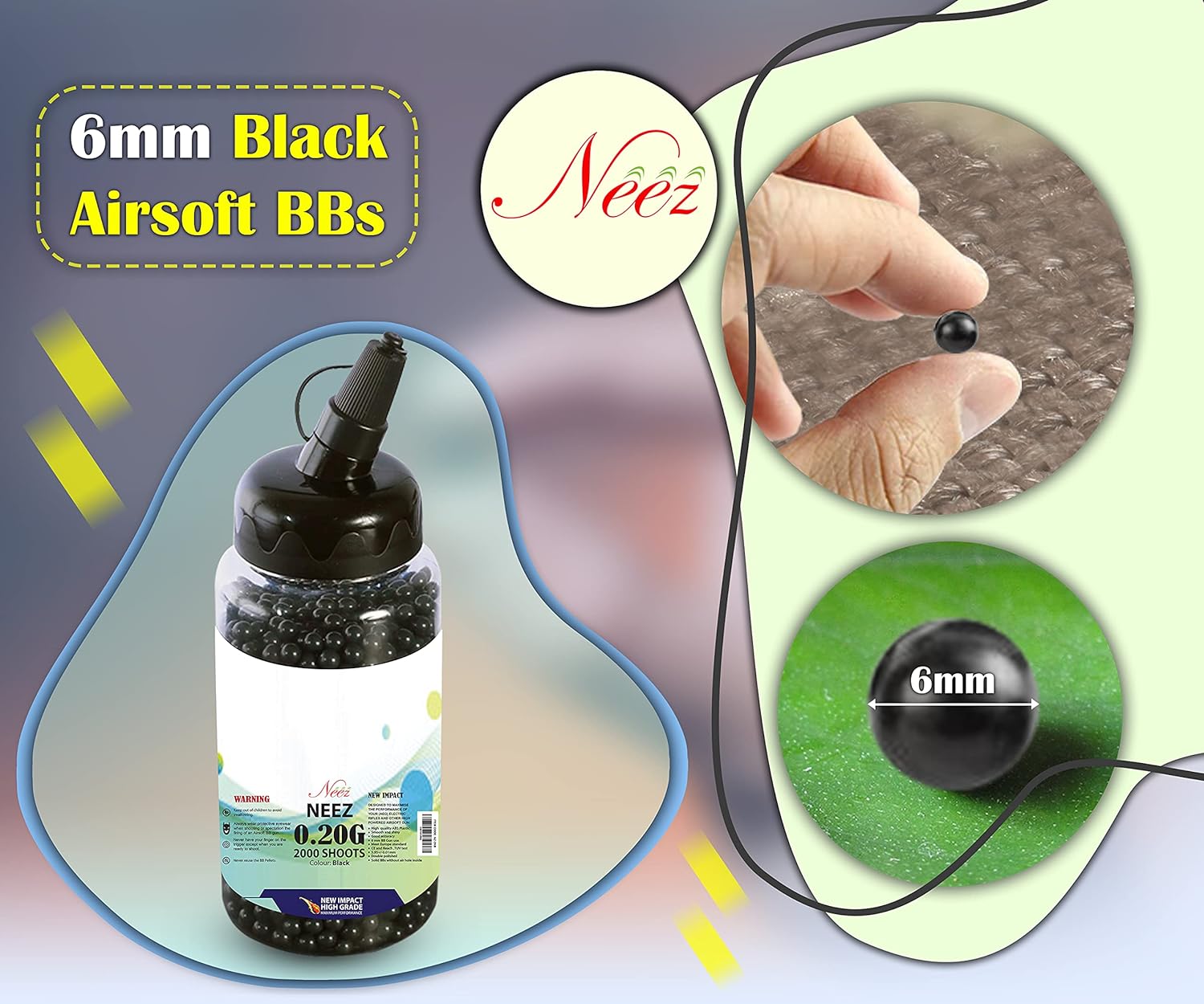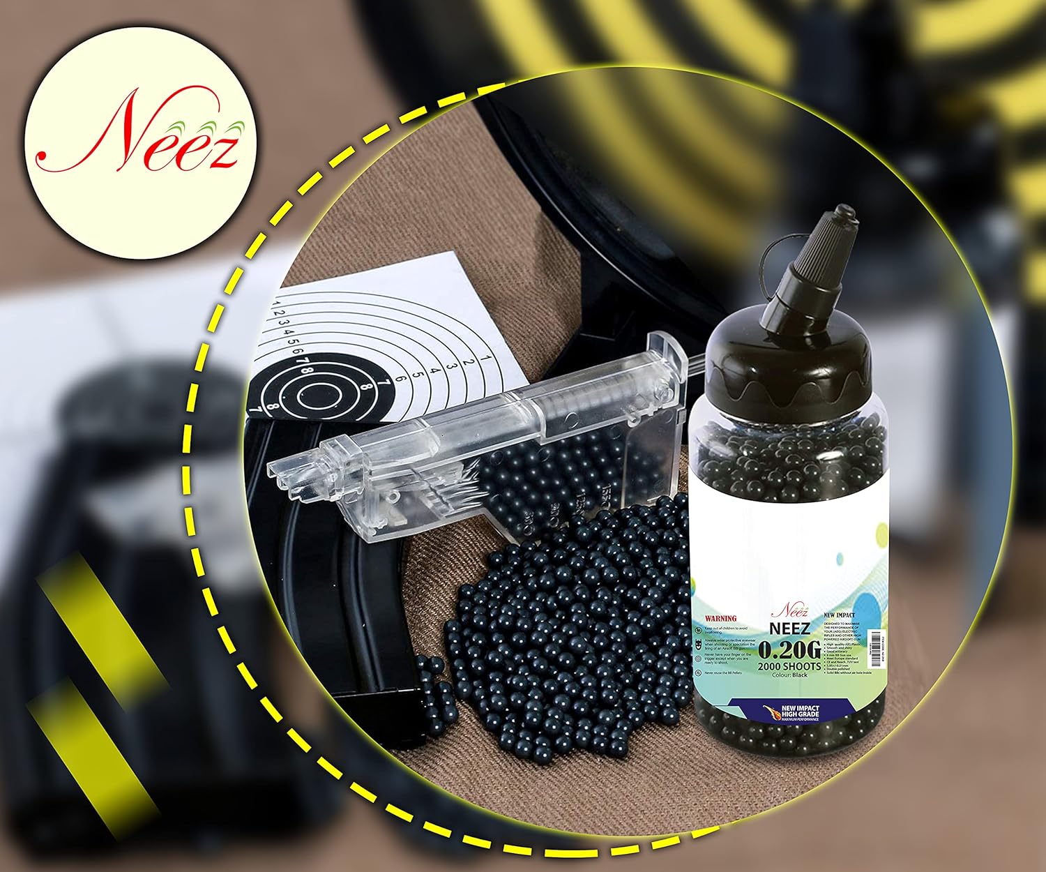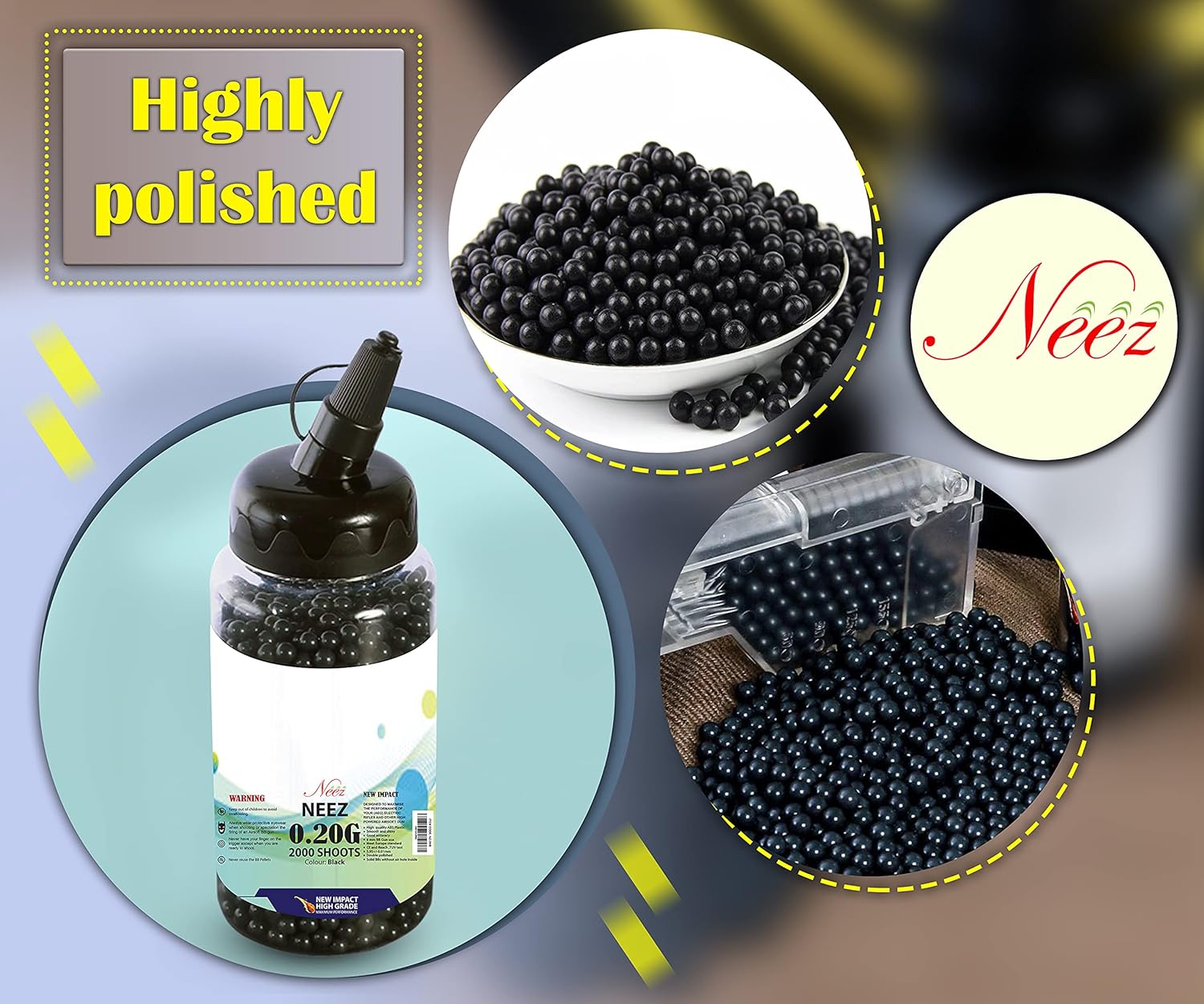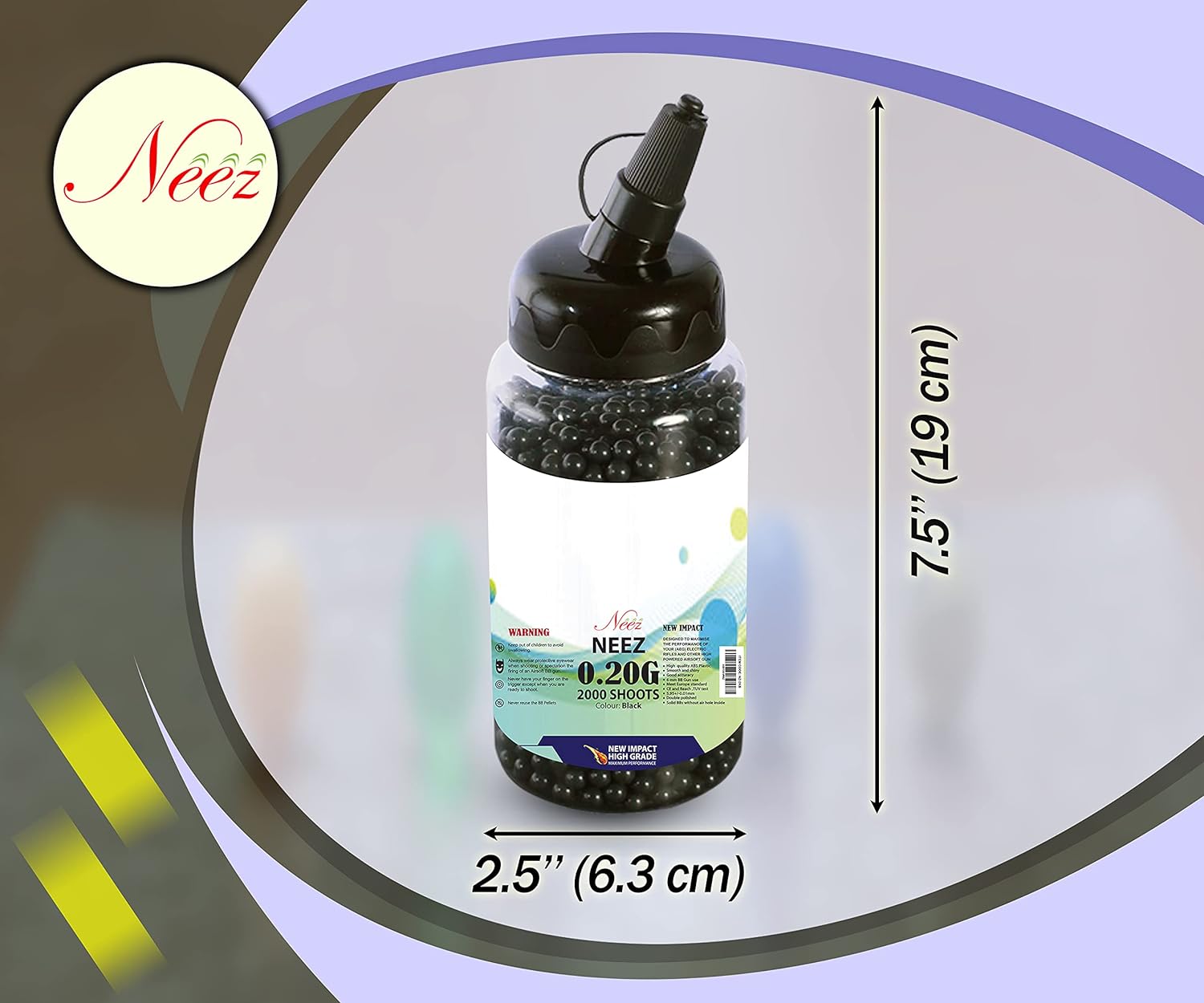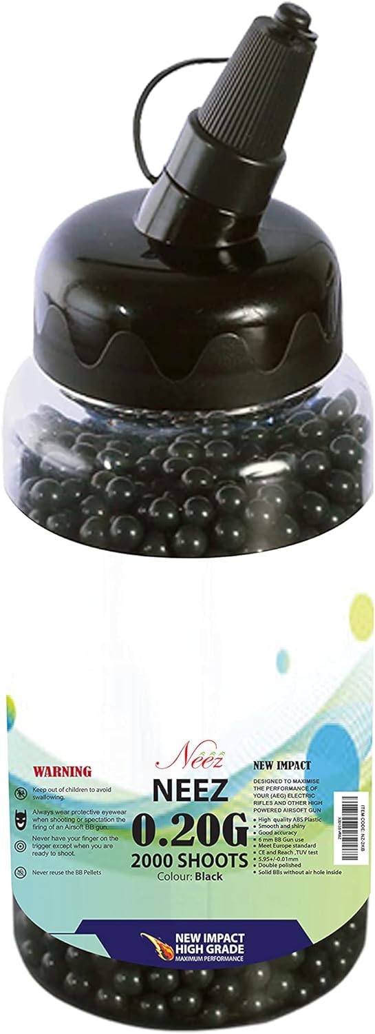 Generous Quantity: The package contains 2000 rounds spout bottle of Neez Airsoft BB Pellets, giving you plenty of ammunition for extended airsoft sessions.