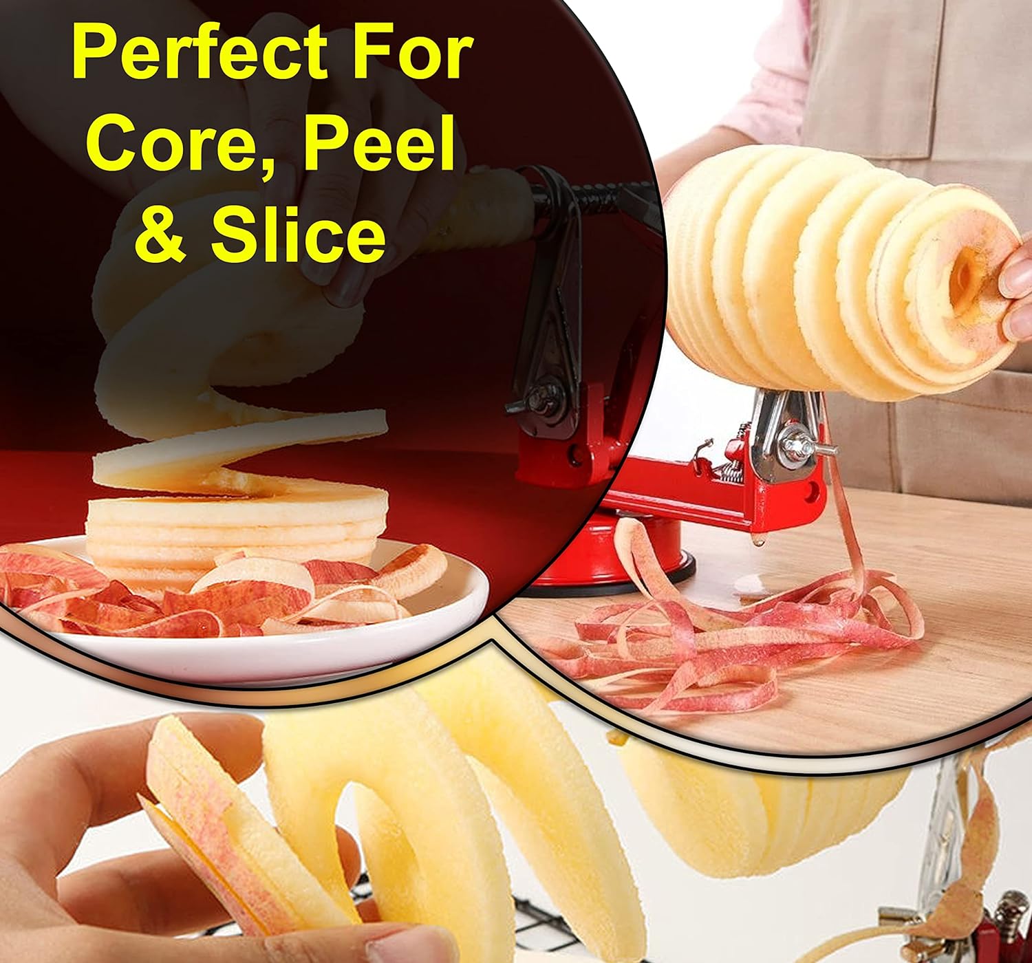 – Three-in-one function: The apple peeler can core, slice, and peel apples, pears, and potatoes quickly and easily.