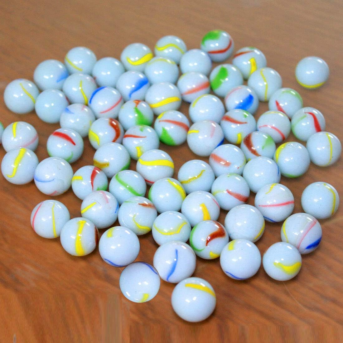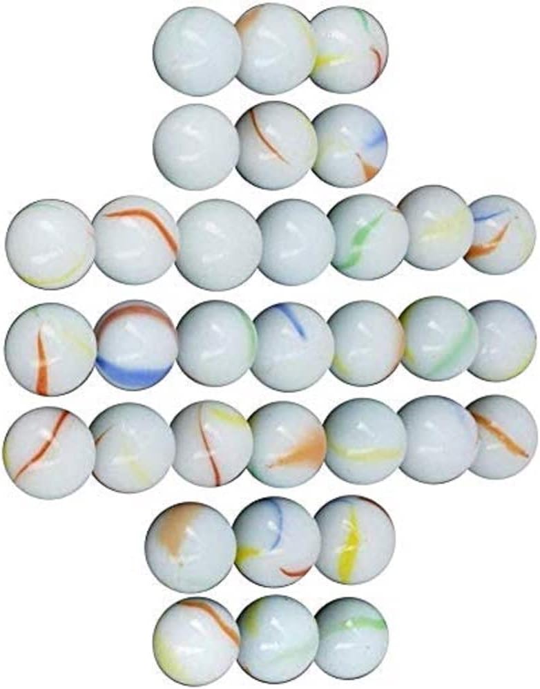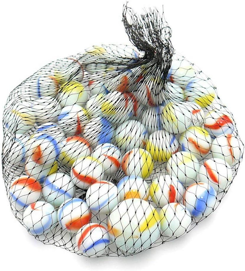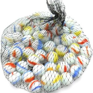 Contents – 160-170Pcs, 955gm Approx. of wonderful design and assorted milky glass marbles with the same size and colour comes in a net bag inside a white cardboard package