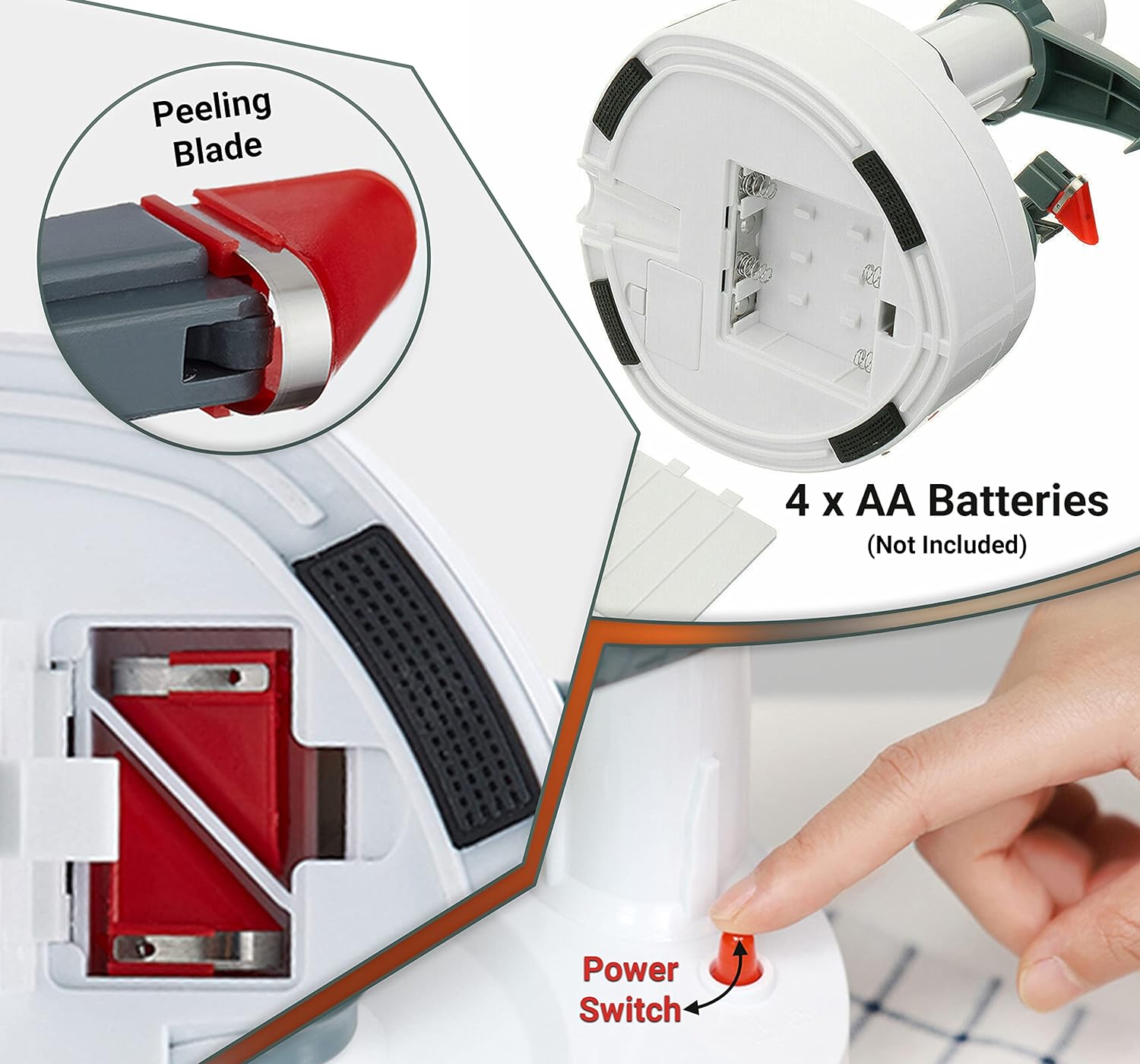 – Time-saving automation: The electric peeler automates fruit and vegetable peels, saving you time in the kitchen.