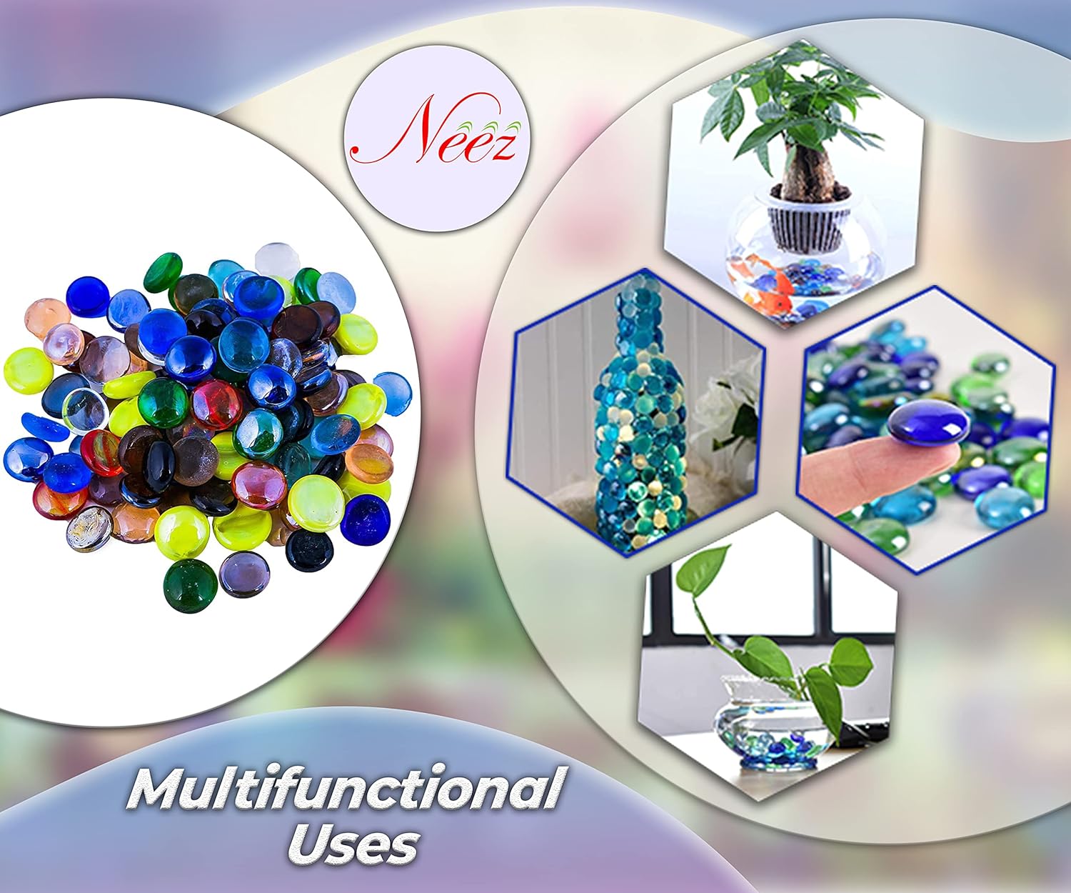 Versatile Use: These glass pebbles can be used for a wide range of decorative purposes, such as enhancing the visual appeal of fish tanks, aquariums, vases, plant pots, gardens, and home decor. Their bright Mixed color adds a pop of vibrancy to any setting.