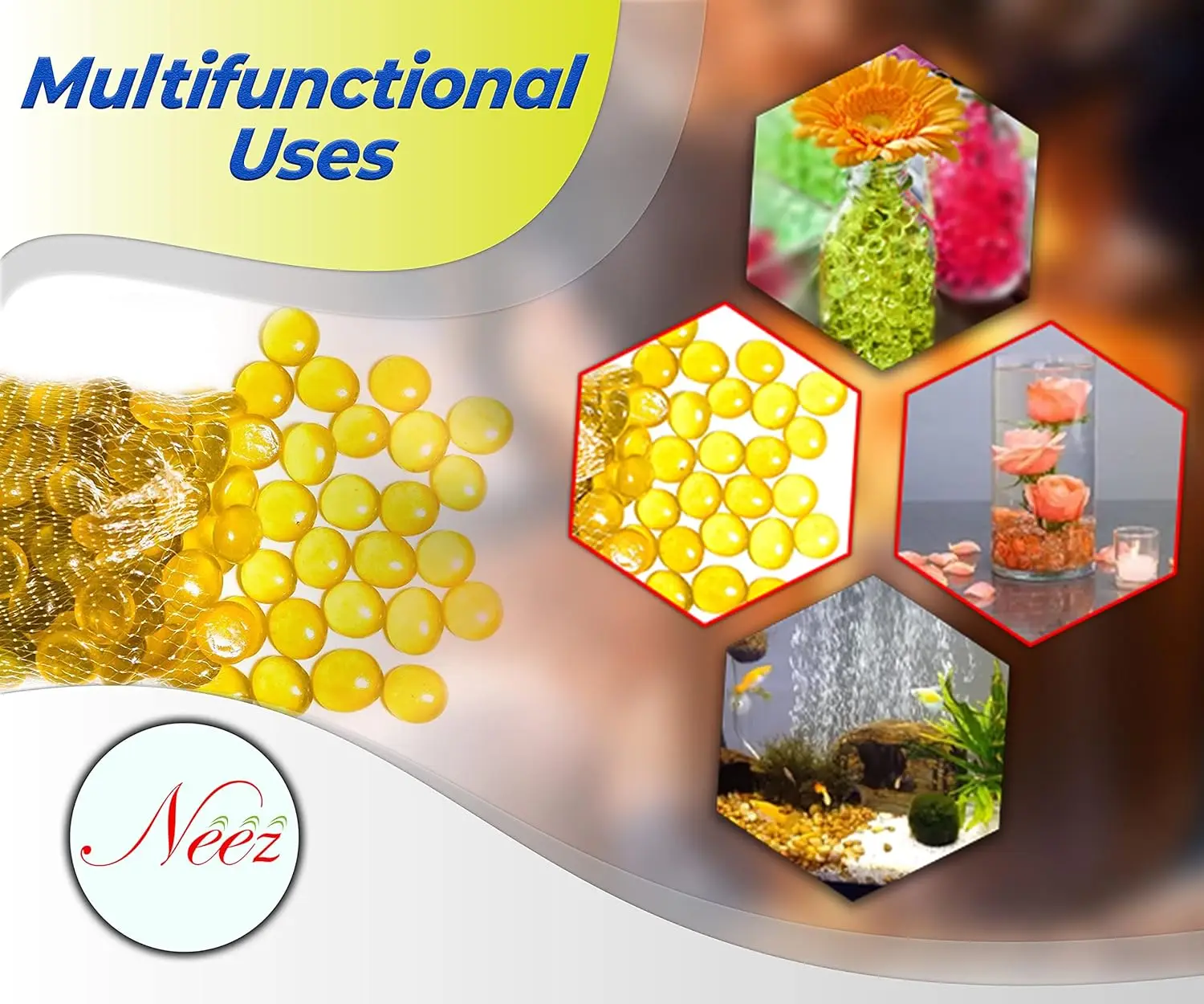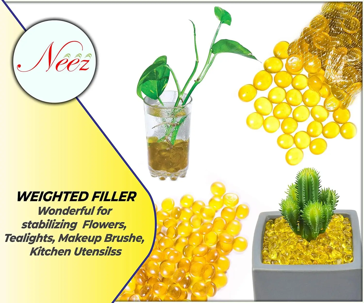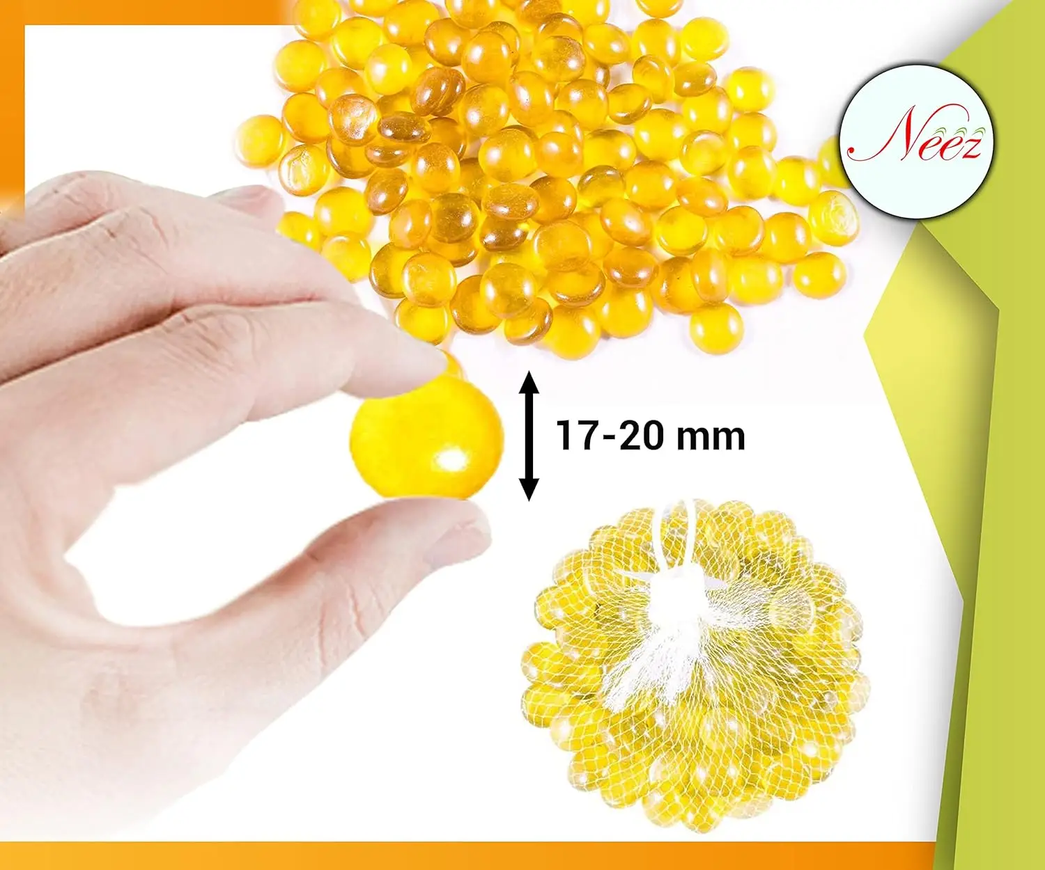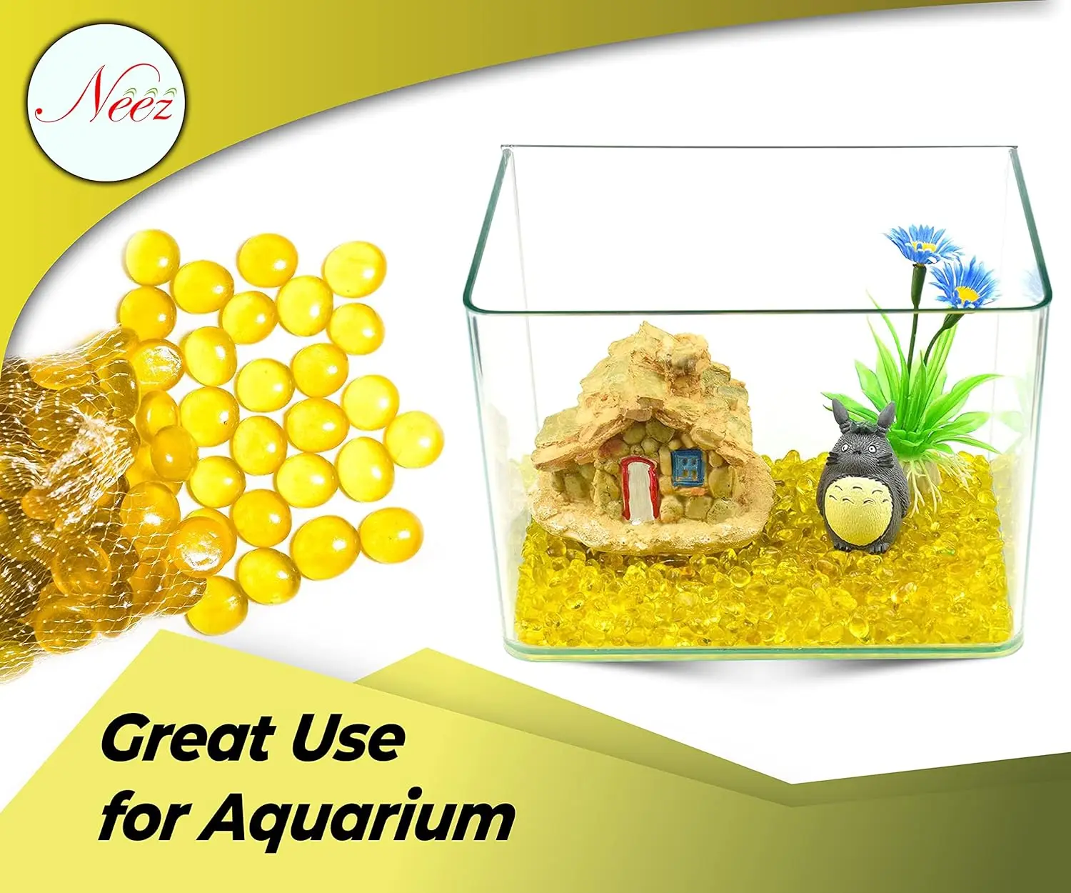 Glass Pebbles for Decoration in Fish Tanks, Aquariums, and Vases – Yellow180 PCS