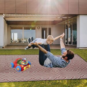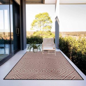 Outdoor Rug Waterproof Lightweight Foldable Plastic Reversible Mat (180x120cm – Brown & White)