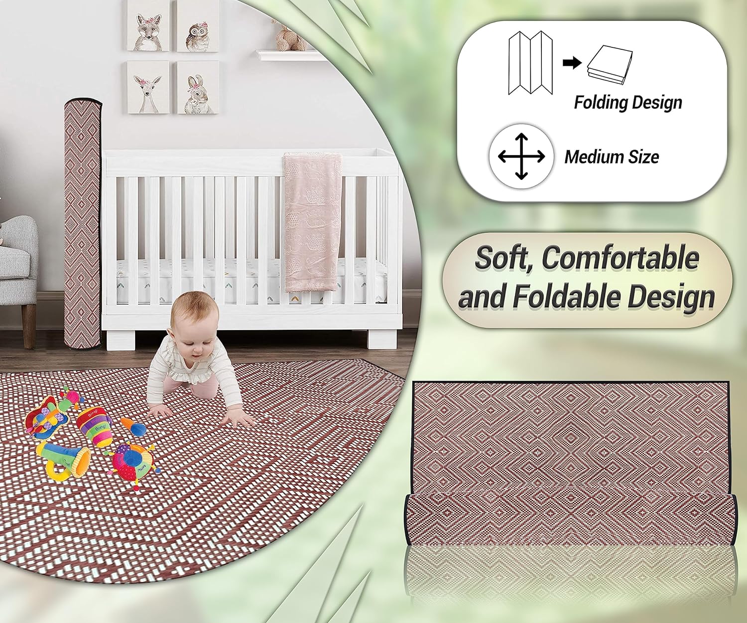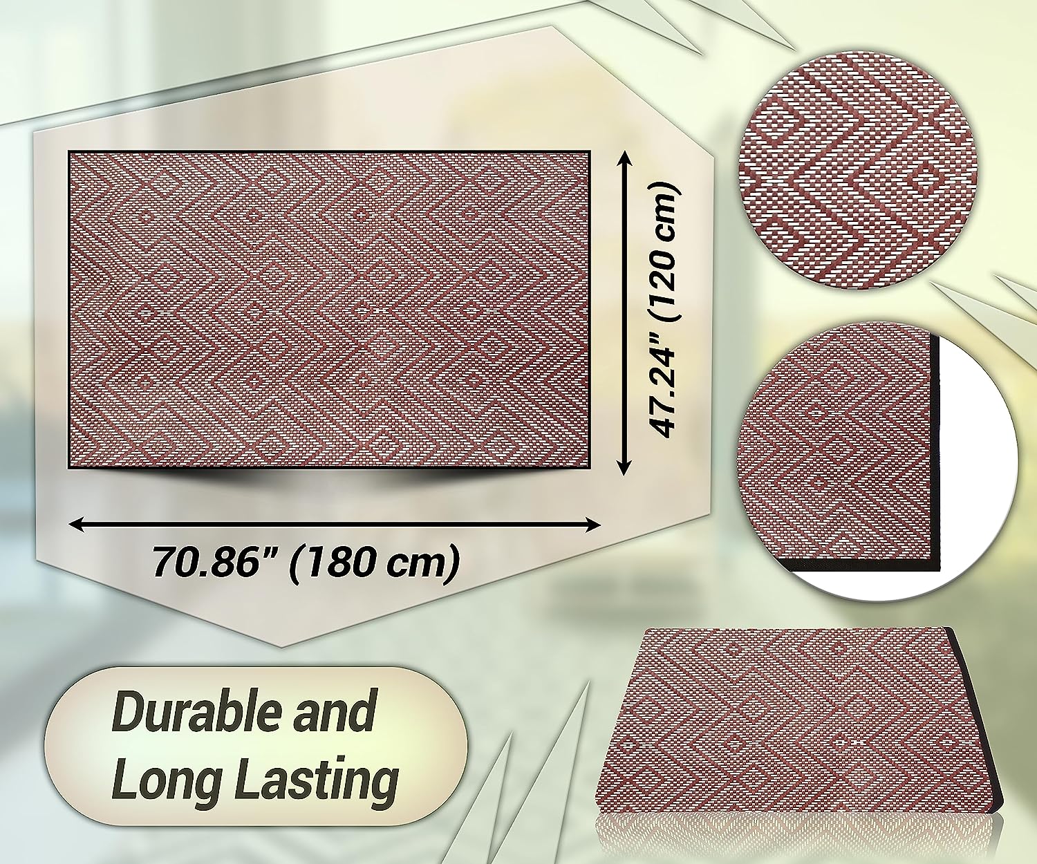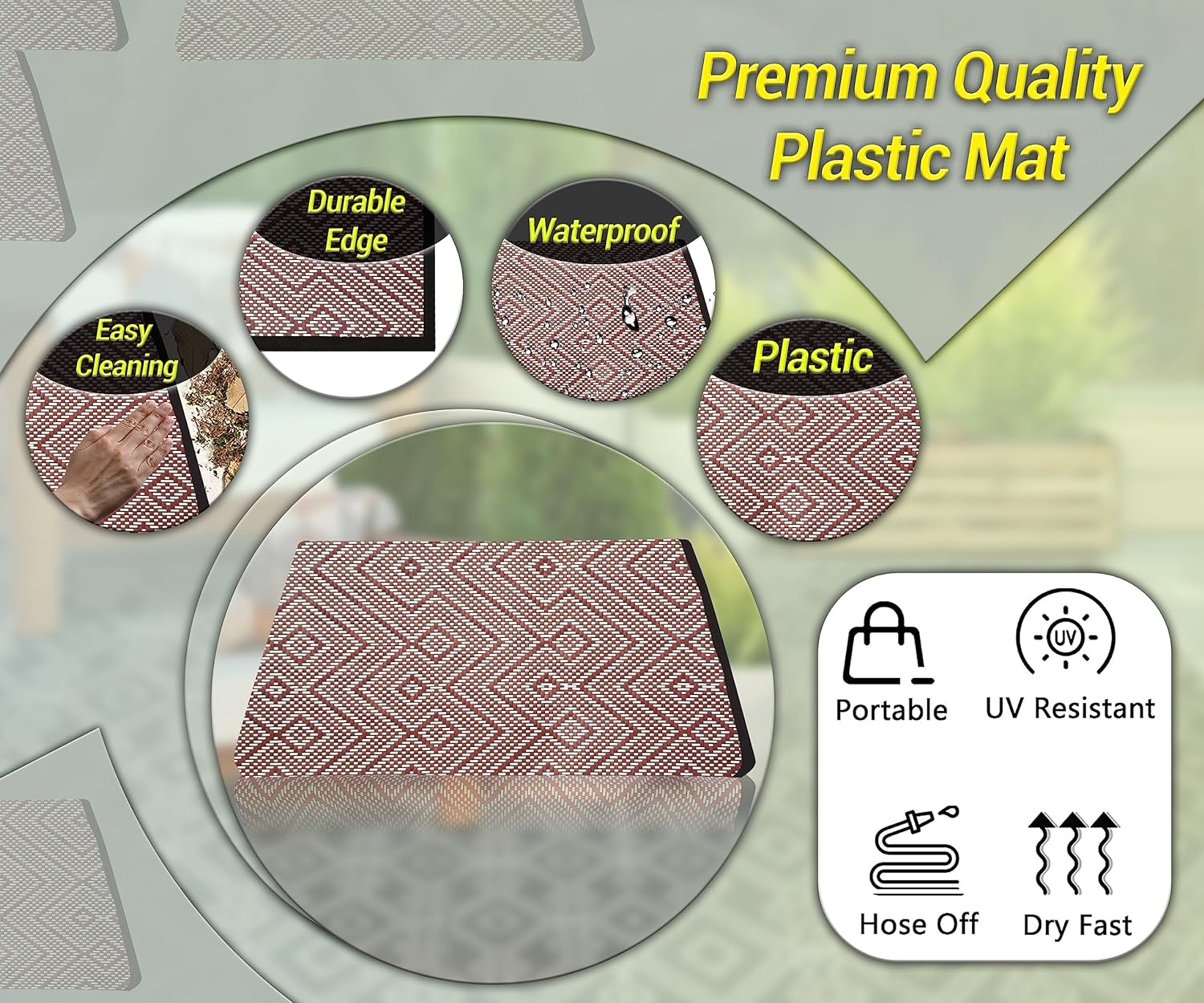 PORTABLE: Rugs are made of Plastic straw rug, Lightweight, can be rolled or folded into compact size for storage and are portable for camping or picnic