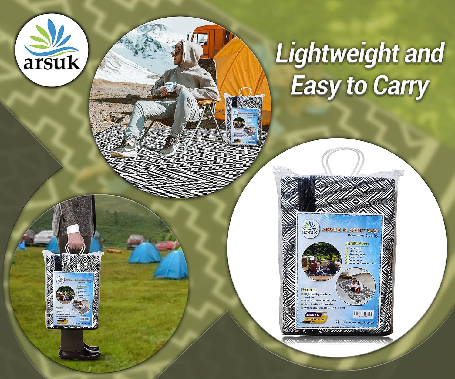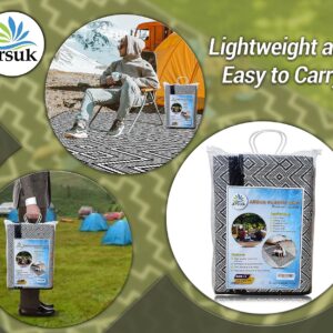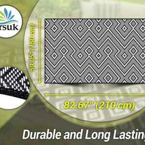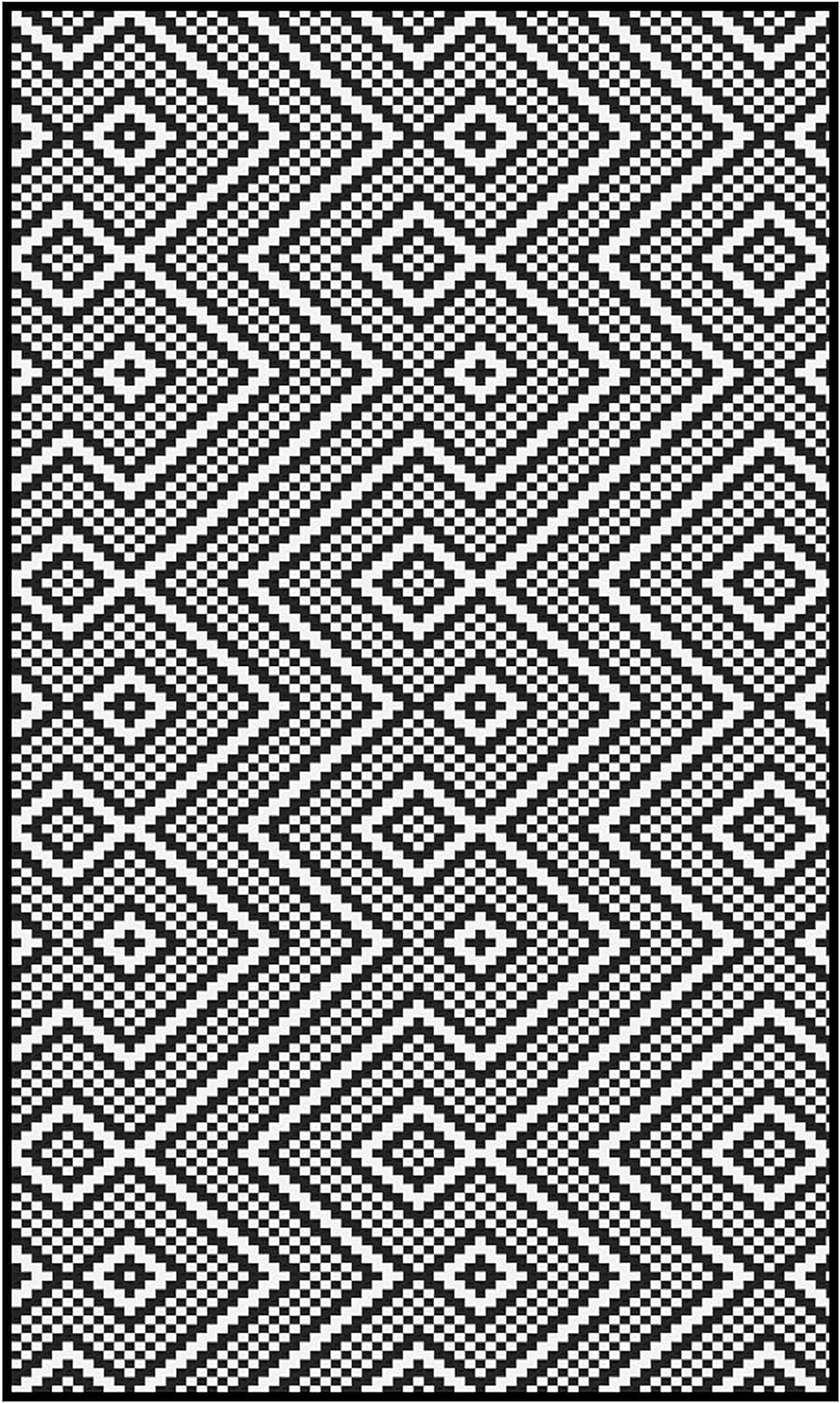 Outdoor Rug Waterproof Lightweight Foldable Plastic Reversible Mat (210x150cm – Black & White)