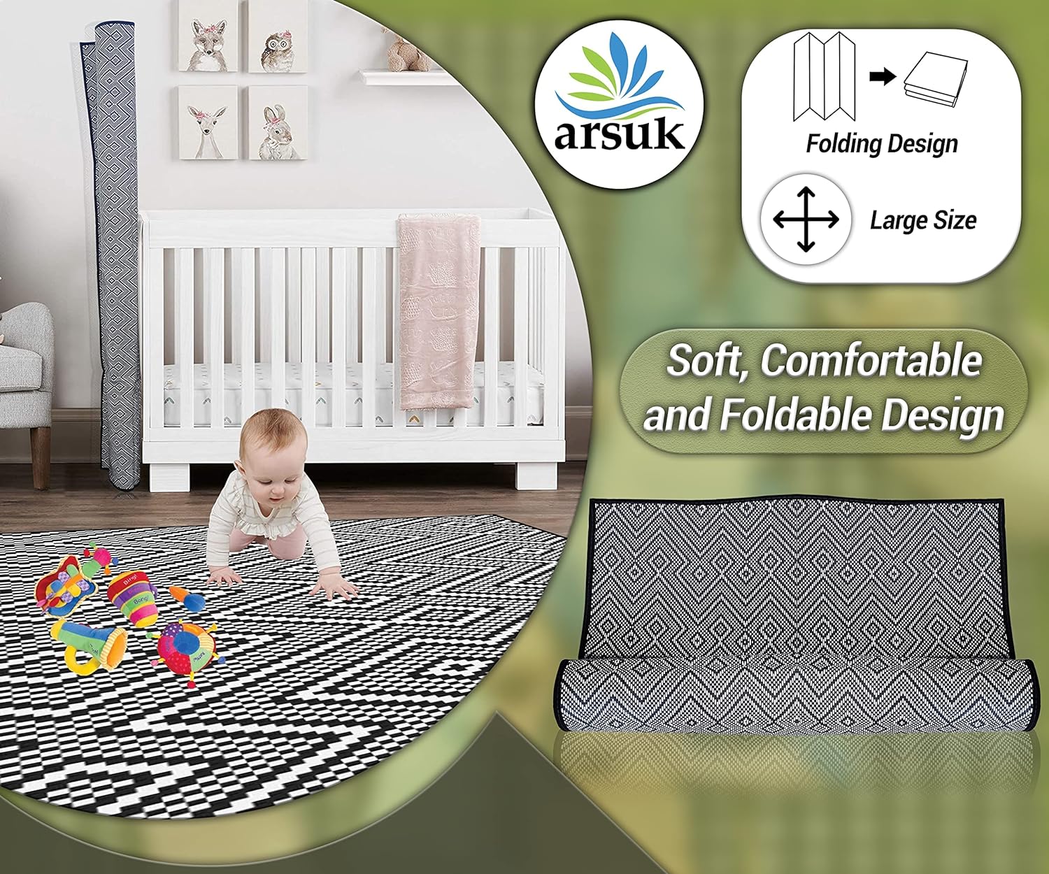 PORTABLE: Rugs are made of Plastic straw rug, Lightweight, can be rolled or folded into compact size for storage and are portable for camping or picnic