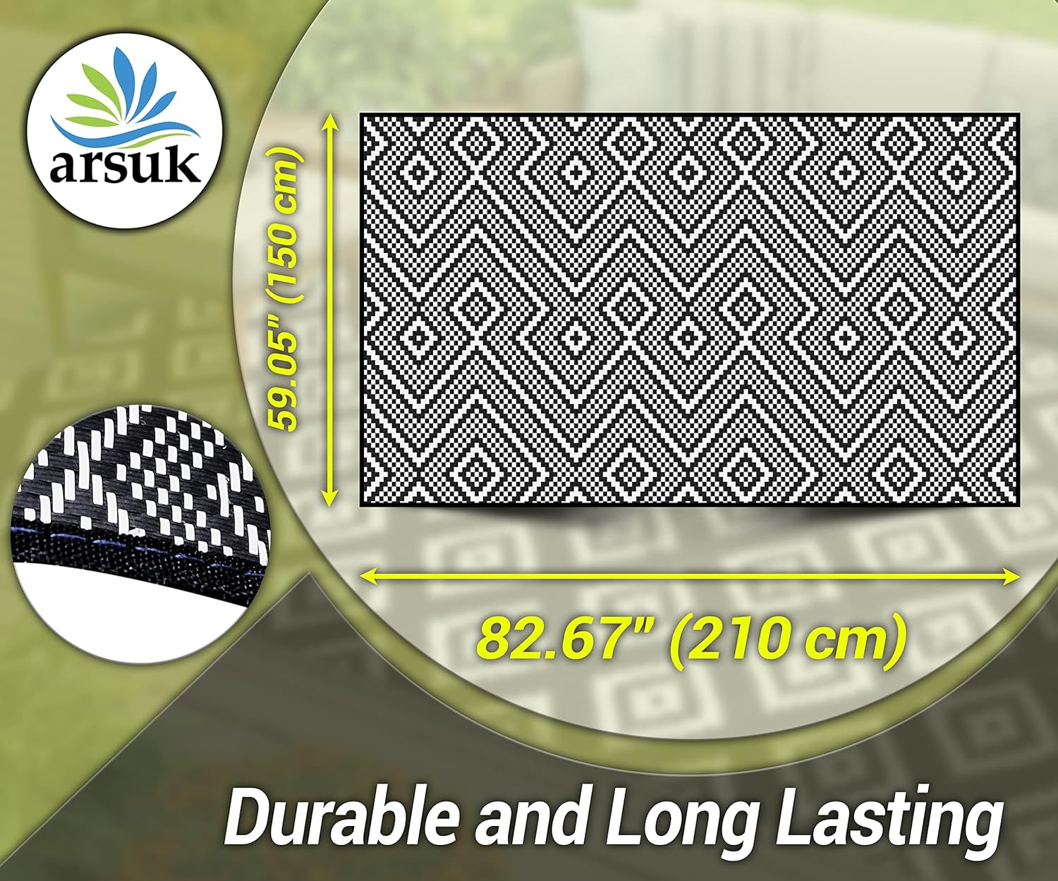 DURABLE & REVERSIBLE: Hemming process to prevent outdoor rugs from falling apart. Fixed rings design at the four corners to prevent movement